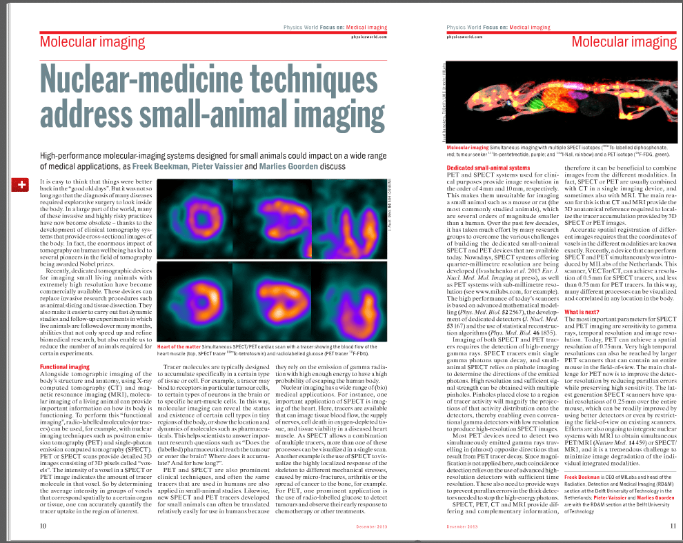 Physics World focuses on Medical Imaging looking at “key technologies and new developments across the wide range of medical-imaging disciplines“, including MILabs high-performance molecular SPECT/PET imaging for a wide range of medical applications.